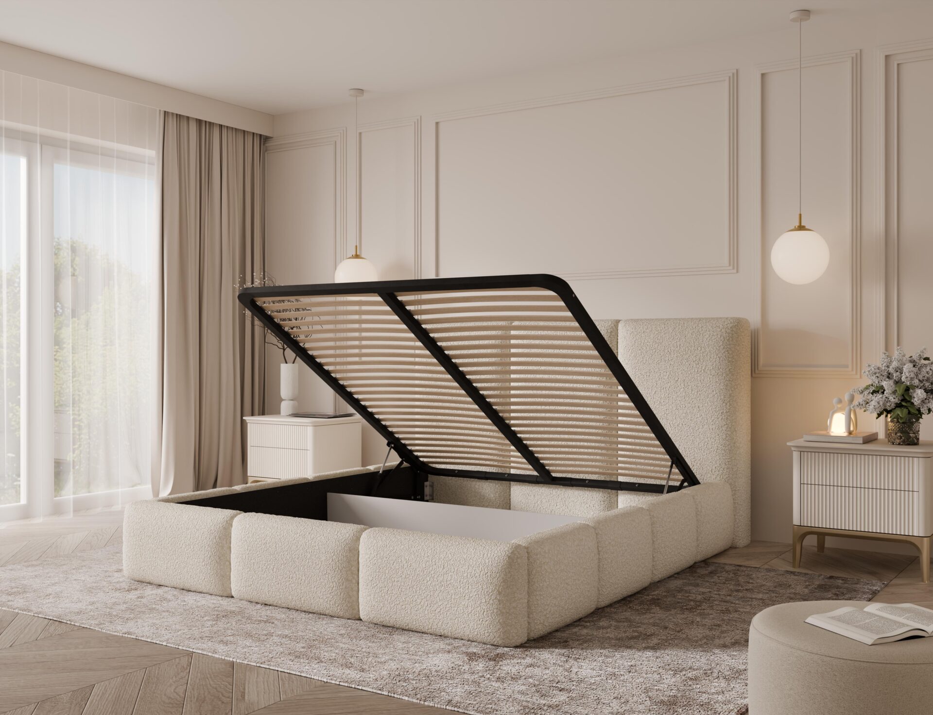 Wysokie, miękkie zagłowie oraz grube boczki zapewniają wygodę użytkowania na co dzień i przyjemne podparcie podczas odpoczynku. Solidna konstrukcja gwarantuje trwałość i stabilność przez lata. Szeroki wybór tkanin velvet, boucle i struktur umożliwia pełną personalizację łóżka pod każde wnętrze.