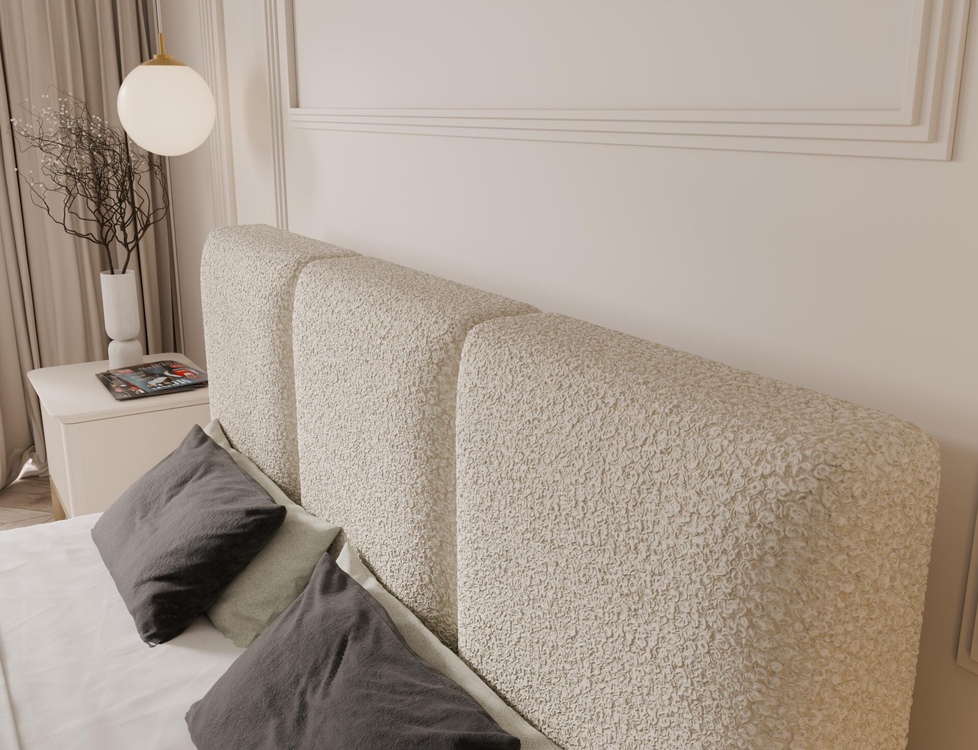 Wysokie, miękkie zagłowie oraz grube boczki zapewniają wygodę użytkowania na co dzień i przyjemne podparcie podczas odpoczynku. Solidna konstrukcja gwarantuje trwałość i stabilność przez lata. Szeroki wybór tkanin velvet, boucle i struktur umożliwia pełną personalizację łóżka pod każde wnętrze.