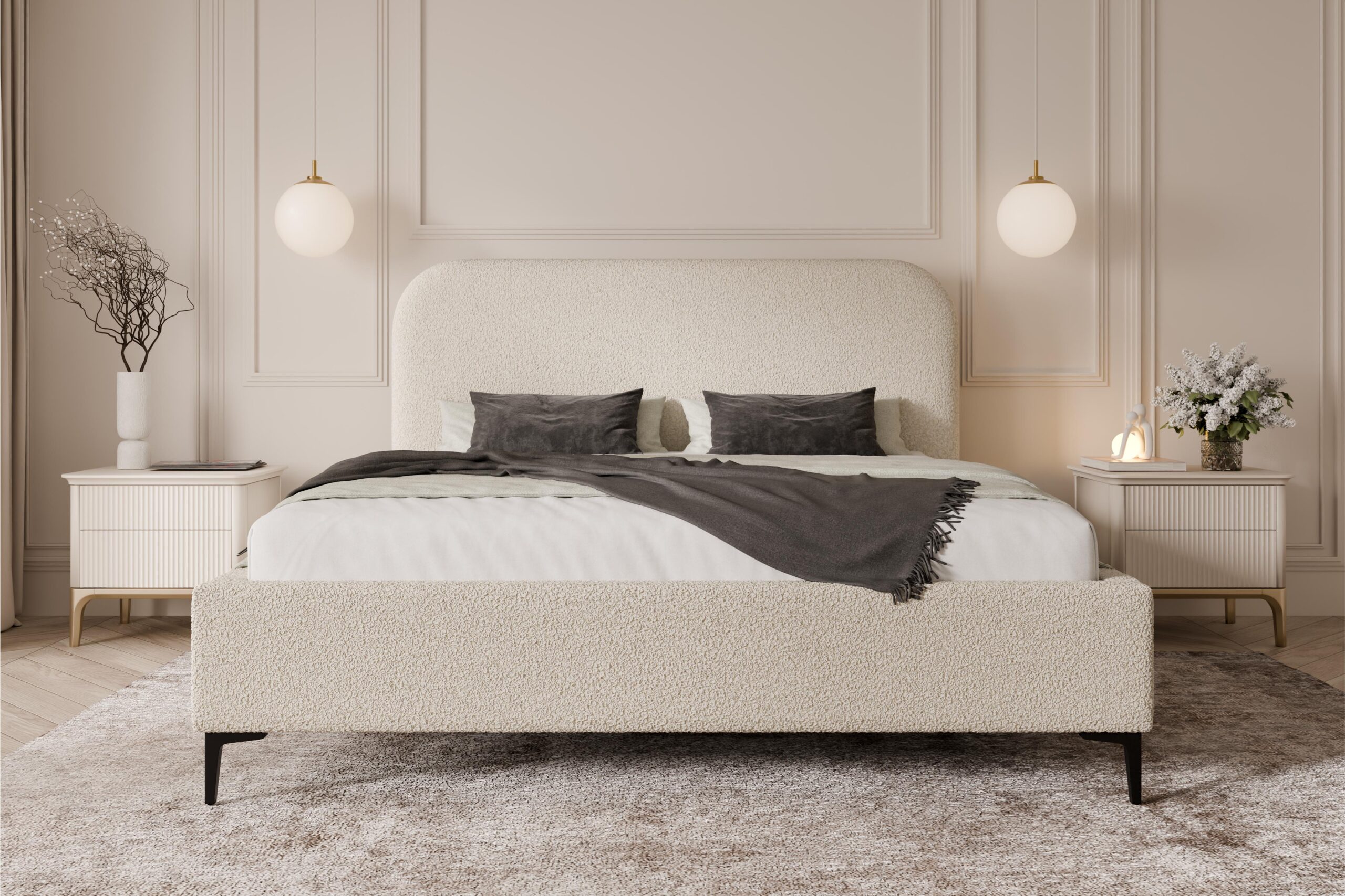 Miękkie, tapicerowane zagłowie o łagodnie zaokrąglonej formie zapewnia komfortowe podparcie podczas codziennego odpoczynku. Starannie zaprojektowana konstrukcja gwarantuje stabilność i trwałość na lata, a przyjemna w dotyku tkanina dodatkowo podnosi komfort użytkowania. Szeroka gama materiałów – od eleganckich velvetów, przez modne boucle, aż po wytrzymałe tkaniny strukturalne – pozwala idealnie dopasować łóżko do aranżacji wnętrza.