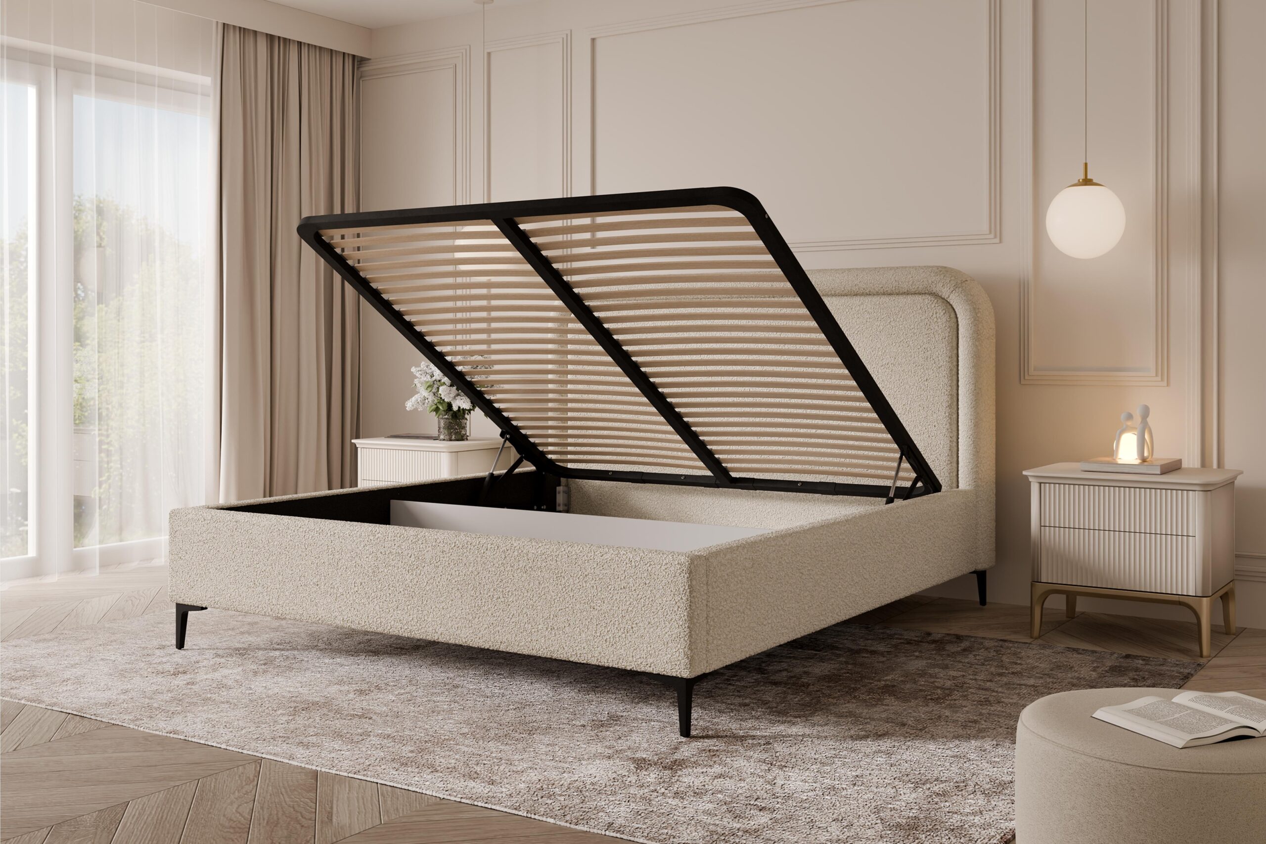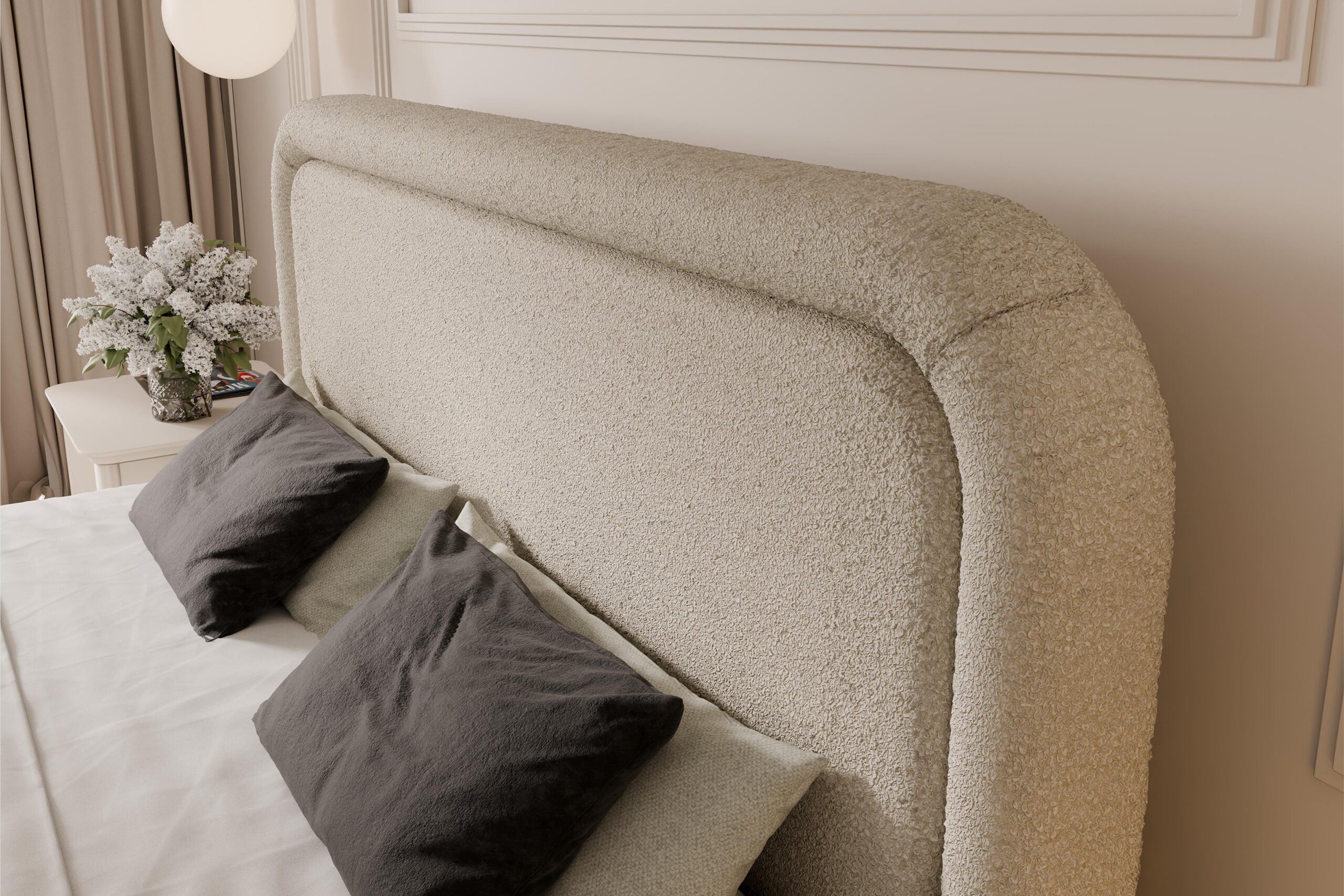 Miękkie, tapicerowane zagłowie o zaokrąglonym kształcie zapewnia wygodne podparcie podczas odpoczynku i buduje przytulny klimat sypialni. Stabilna konstrukcja oraz staranne wykończenie gwarantują trwałość i komfort użytkowania na co dzień. Szeroki wybór tkanin – od eleganckich velvetów, przez modne boucle, aż po strukturalne materiały – pozwala dopasować łóżko idealnie do stylu wnętrza.