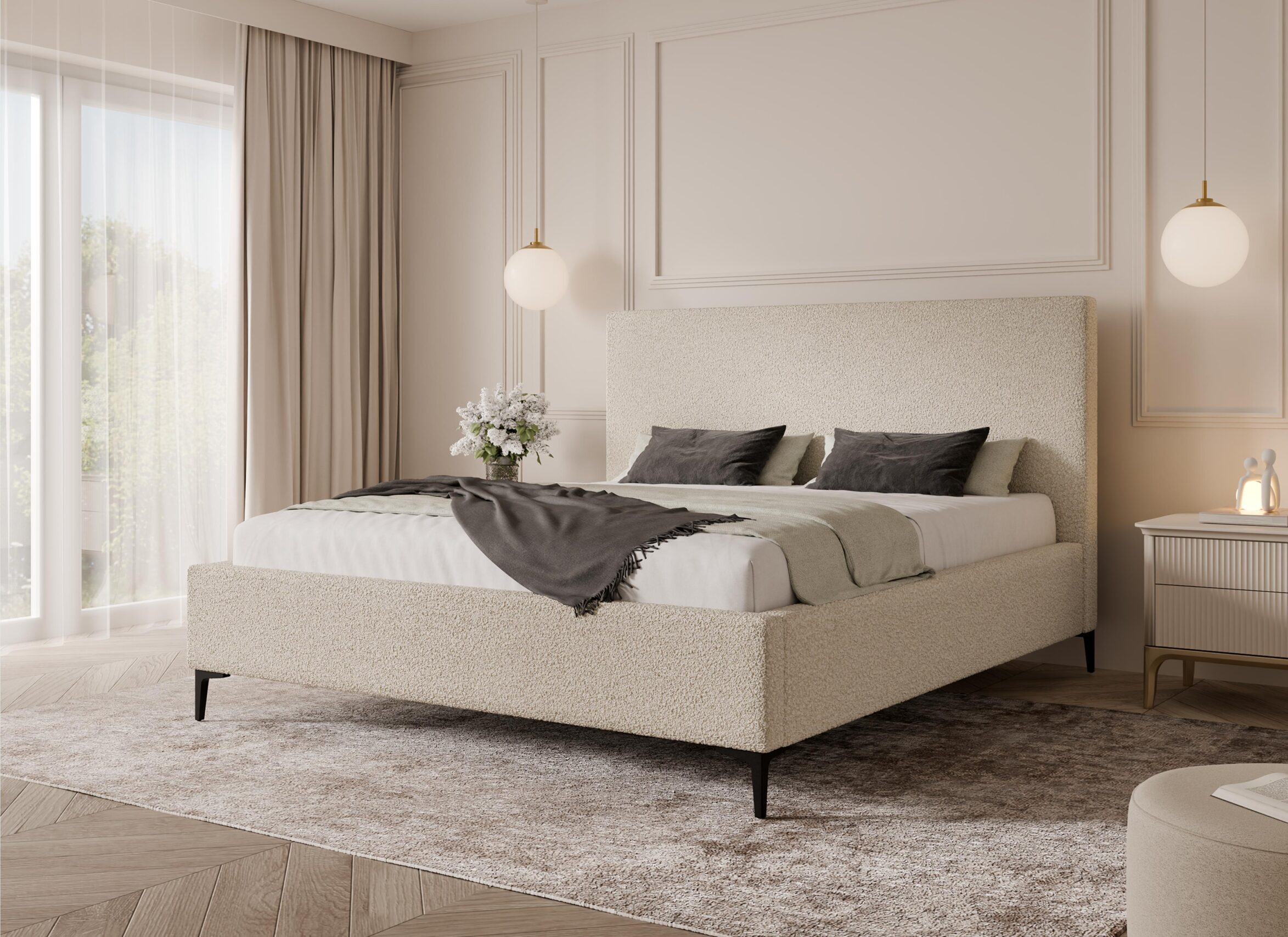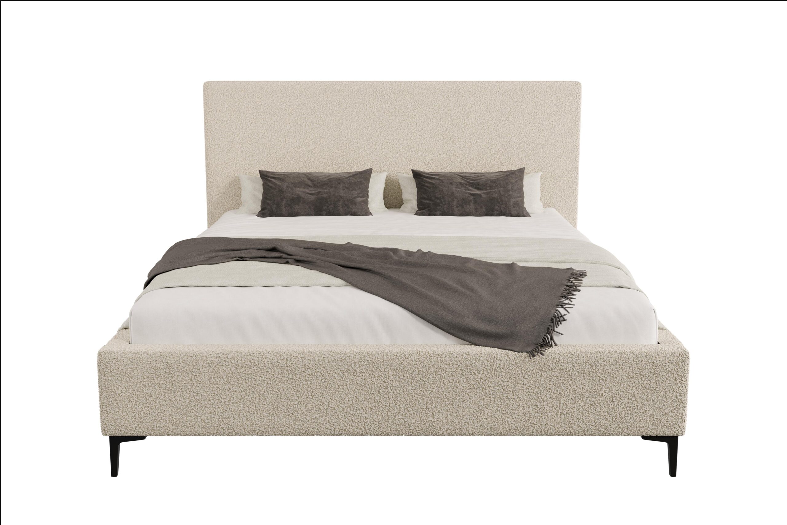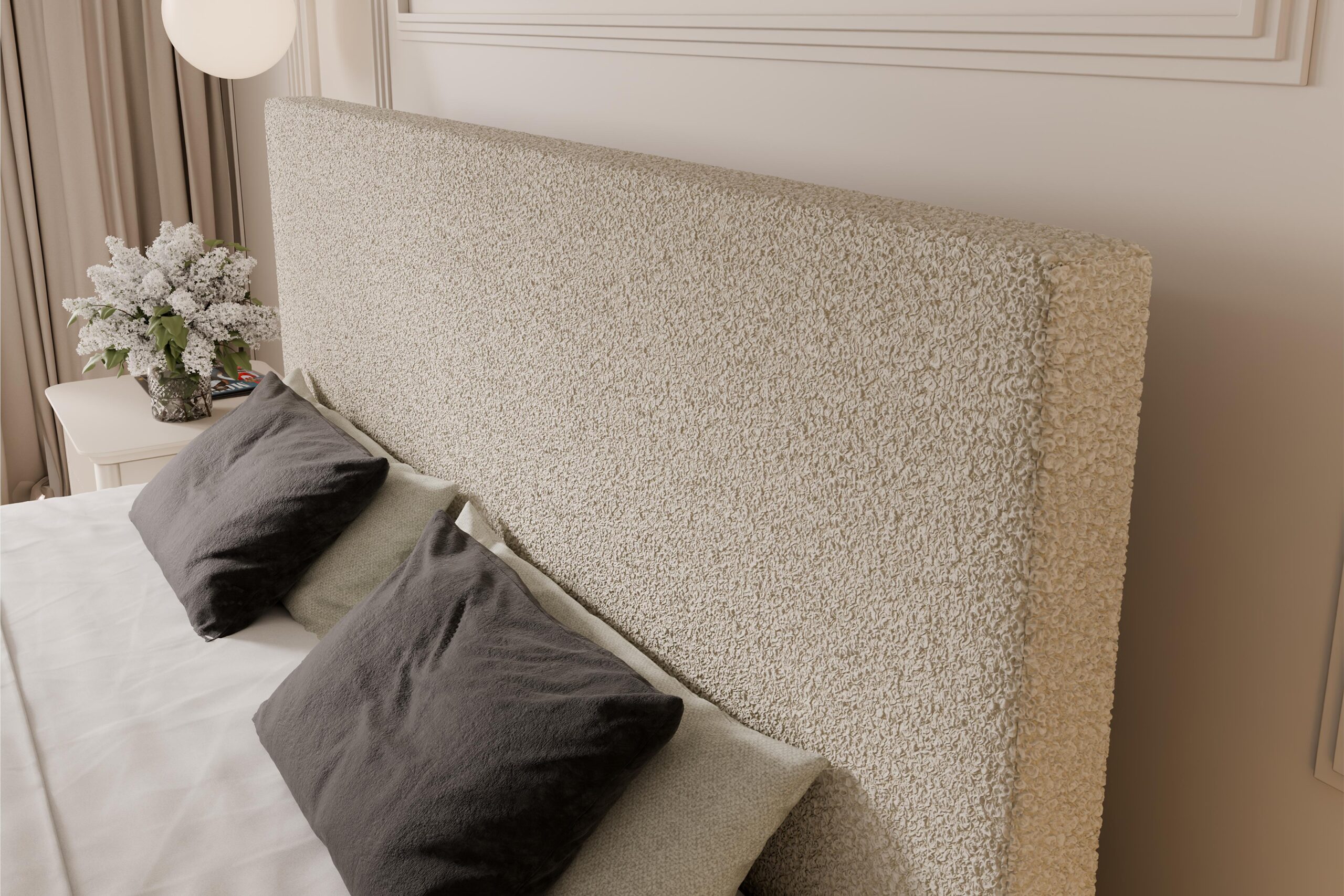 Proste, tapicerowane zagłowie zapewnia wygodne podparcie podczas odpoczynku i podkreśla nowoczesny charakter łóżka. Solidna konstrukcja oraz staranne wykonanie gwarantują trwałość i stabilność na lata użytkowania. Szeroki wybór tkanin – od eleganckich velvetów, przez modne boucle, aż po wytrzymałe materiały strukturalne – umożliwia pełne dopasowanie łóżka do indywidualnych preferencji i stylu wnętrza.